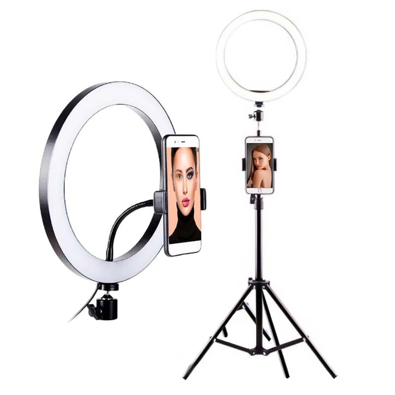 Aro de luz de 25 cm. Para maquillaje o fotografía. LED blanco con 3 niveles (blanco, cálido y natural). Soporte para celular. Alimetación USB