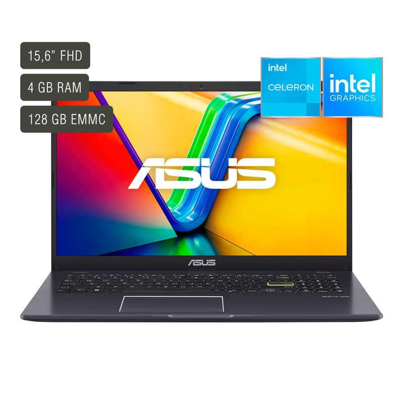 El Notebook ASUS E510 KA N4500 es un portátil de 15.6 pulgadas con Windows 11. Cuenta con un procesador Intel N4500, 4GB de RAM y un disco duro SSD de 128GB, ofreciendo un rendimiento rápido y eficiente para trabajo diario y entretenimiento.